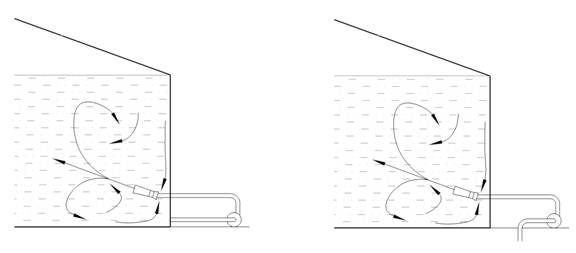 如果一個或幾個SG系列罐用噴射式混合器位置排列正確的話,在罐中就產(chǎn)生了一個三維射流,它把整個罐內(nèi)的物質(zhì)進(jìn)行均勻混合,而不產(chǎn)生旋轉(zhuǎn)的運(yùn)動。