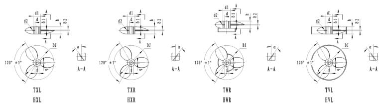 75、三葉左旋導(dǎo)流筒推進(jìn)式TVL 76、三葉右旋推進(jìn)式TXR