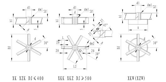 27、六斜葉整體開(kāi)啟渦輪式XK 28、六斜葉可拆開(kāi)啟渦輪式XCK