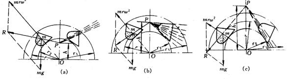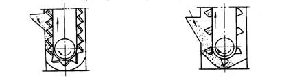 斗提機(jī)在頭部卸載。卸載的形式有三種,即離心式(圖a)、離心—重力式(圖b)及重力式(圖c)。